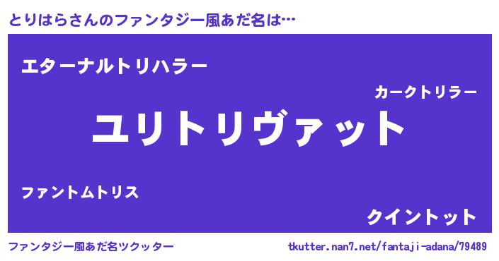 | ヒーロー風カッコイイあだ名 | 『ウルトラとりはらマン』『幻影騎士トリ』 |