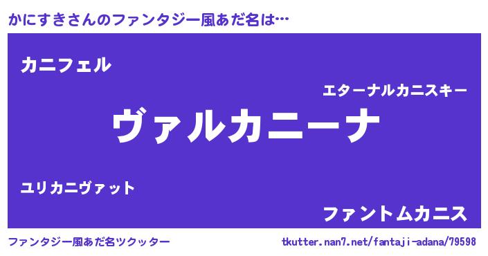 男性向けラノベタイトル風あだ名 | 『この素晴らしい世界にかにすきを!』 |