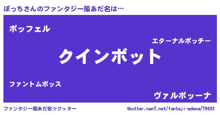 | 男性向けラノベタイトル風あだ名 | 『ノーゲーム・ノーボッチ』 |