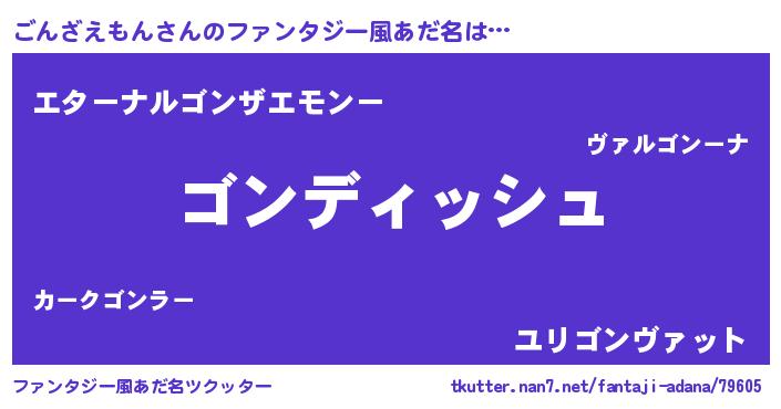 | 男性向けラノベタイトル風あだ名 | 『ごんざえもんという概念が存在しない退屈な世界 』 |