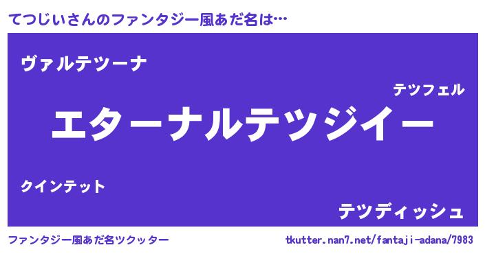 | 男性向けラノベタイトル風あだ名 | 『てつじいに滅ぼされるだけの簡単なお仕事です』 |