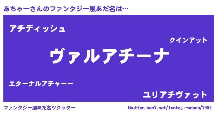 | 男性向けラノベタイトル風あだ名 | 『あちゃーに滅ぼされるだけの簡単なお仕事です』 |