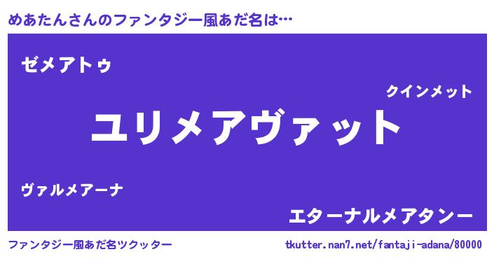 | 男性向けラノベタイトル風あだ名 | 『転生したらめあたんだった件』 |