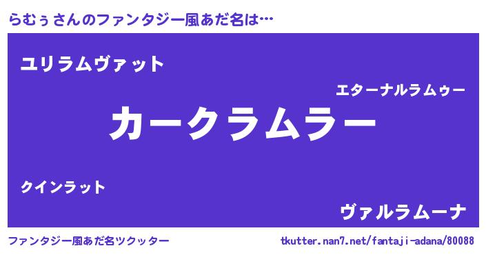 | 欧米人風あだ名 | 『らむぅ・ステッグマイヤー』 |