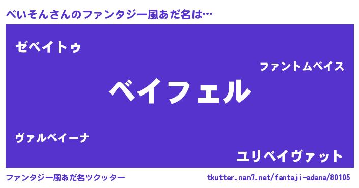 | ポケモン風あだ名 | 『ベイチュウ』『ベイセウス』 |