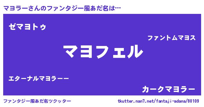 | ヘコむあだ名 | 『マヨにー』『マヨお』『なまこ酢』 |
