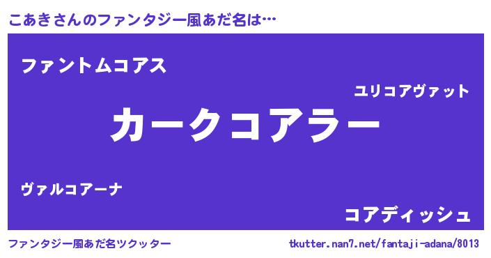 | 欧米人風あだ名 | 『こあき・ステッグマイヤー』 |