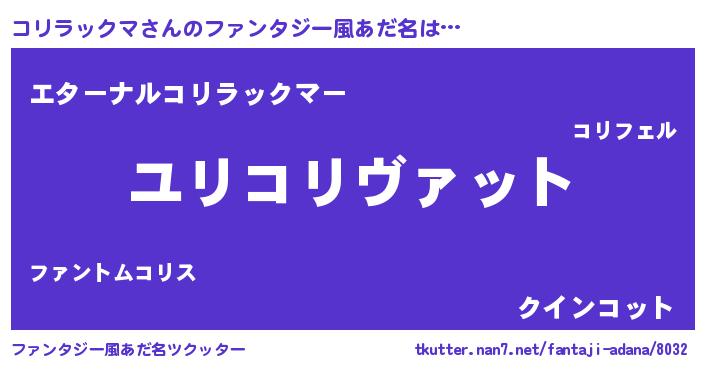 | 女子向けラノベタイトル風あだ名 | 『婚約破棄系悪役コリラックマに転生したので、保身に走りました。』 |