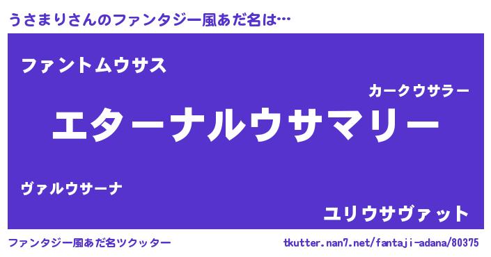 | ポケモン風あだ名 | 『ウサマダネ』『ヒウサマリ』 |