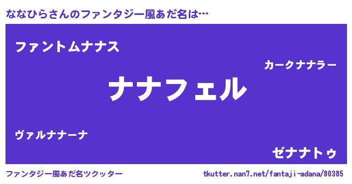 | 意味不明あだ名 | 『ペロリンななひら』『自称ななひら』 |