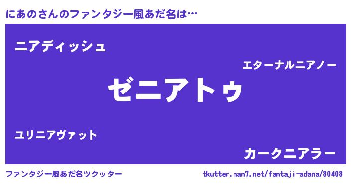 | ポケモン風あだ名 | 『ニアセウス』『ゼニニア』 |