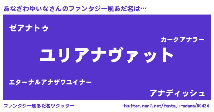 | 男性向けラノベタイトル風あだ名 | 『アナザワユイナスレイヤー』 |
