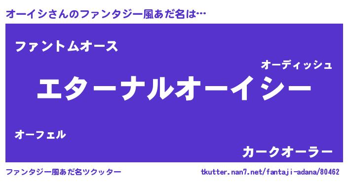 | 意味不明あだ名 | 『オーイシフォーエバー』『自称オーイシ』 |