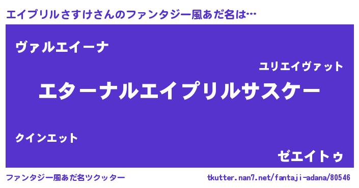 | 意味不明あだ名 | 『エイプリルさすけフォーエバー』 |