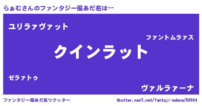 | 意味不明あだ名 | 『眠気覚ましガムらぁむ味』『自称らぁむ』 |