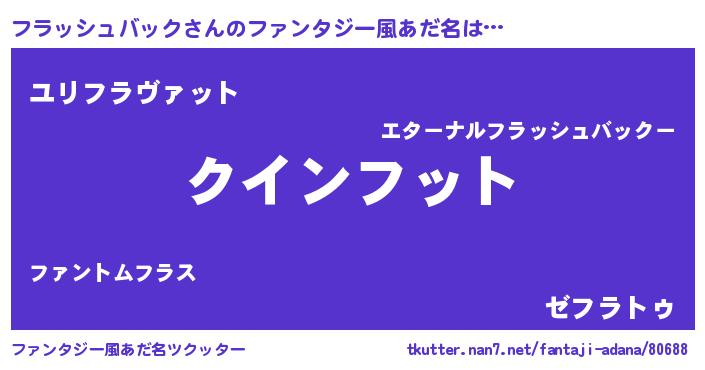 | 男性向けラノベタイトル風あだ名 | 『おまえをオタクにしてやるから、俺をフラッシュバックにしてくれ! 』 |
