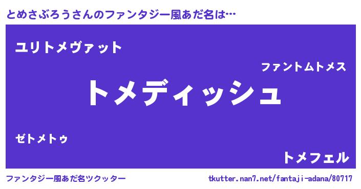 | ヘコむあだ名 | 『とめさぶろう(苦笑)』『とめもー』 |