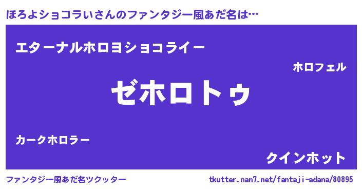 | 女子向けラノベタイトル風あだ名 | 『ほろよショコラいなんてお断りですっ。』 |