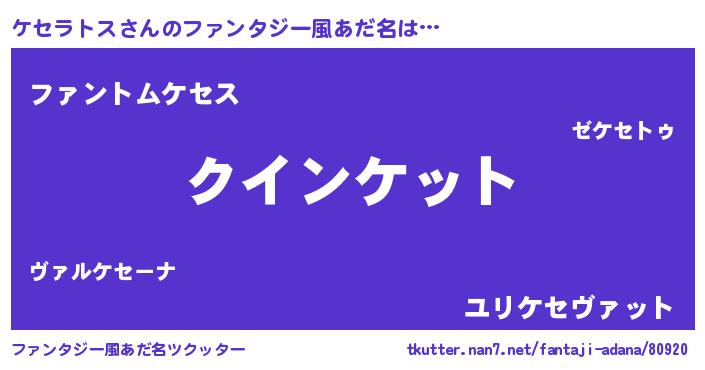 | 男性向けラノベタイトル風あだ名 | 『ノーゲーム・ノーケセラトス』 |