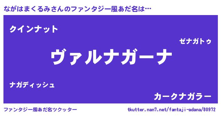 | 男性向けラノベタイトル風あだ名 | 『魔弾の王とながはまくるみ』 |