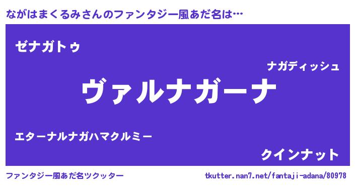 | 男性向けラノベタイトル風あだ名 | 『この素晴らしい世界にながはまくるみを!』 |