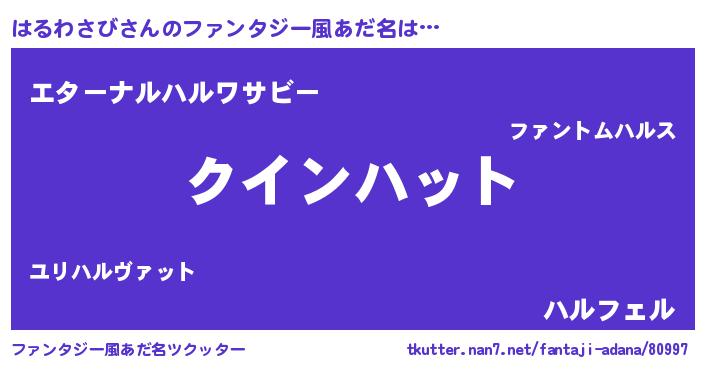 | 女子向けラノベタイトル風あだ名 | 『はるわさび恋絵巻』 |