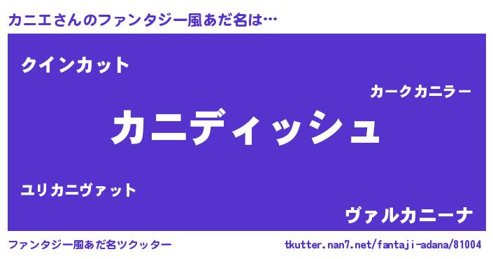 | ヘコむあだ名 | 『カニエ(震え声)』『カニを』 |