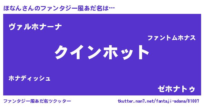 | ヘコむあだ名 | 『ほなぷりん』『ほなん(小並感)』 |