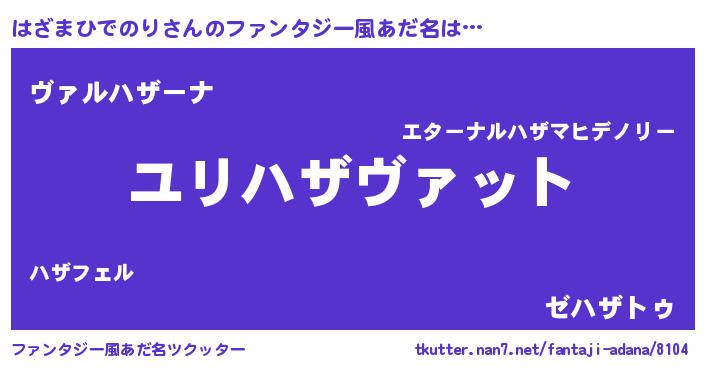 | 男性向けラノベタイトル風あだ名 | 『ハザマヒデノリスレイヤー』 |