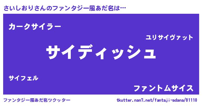 | ヒーロー風カッコイイあだ名 | 『ネオサイシオリ』『炎刃騎士サイ』 |