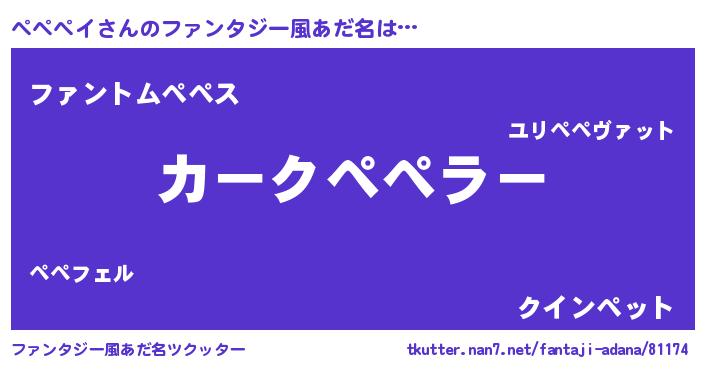 | 胡散臭い通販商品みたいなあだ名 | 『信頼と実績のネックレス…その名も「ペペペイ」』 |