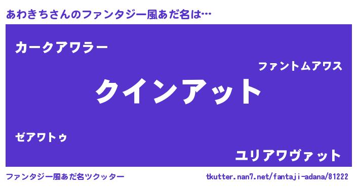| ヒーロー風カッコイイあだ名 | 『慈愛の使者あわきち』『魔戒騎士アワ』 |