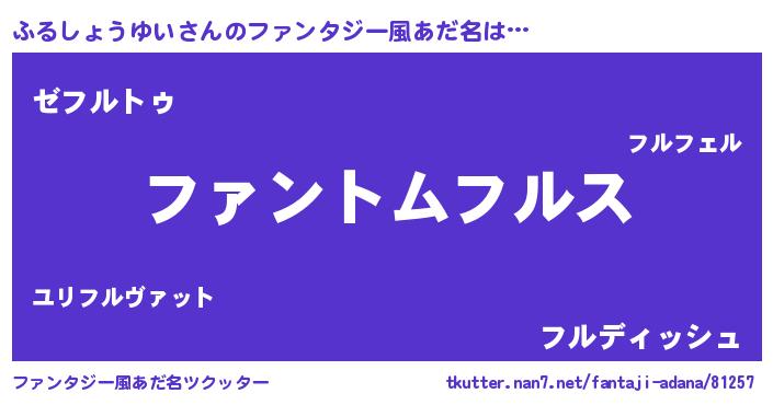 | ポケモン風あだ名 | 『ヒフルショウユイ』『フルセウス』 |