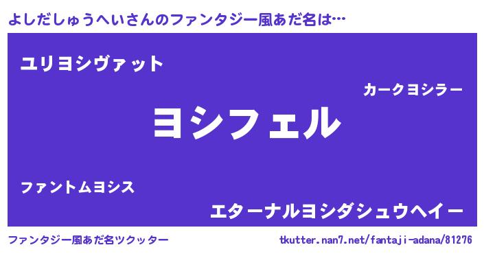 | 男性向けラノベタイトル風あだ名 | 『ヨシダシュウヘイアートオンライン』 |