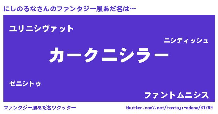 | 男性向けラノベタイトル風あだ名 | 『にしのるなに滅ぼされるだけの簡単なお仕事です』 |