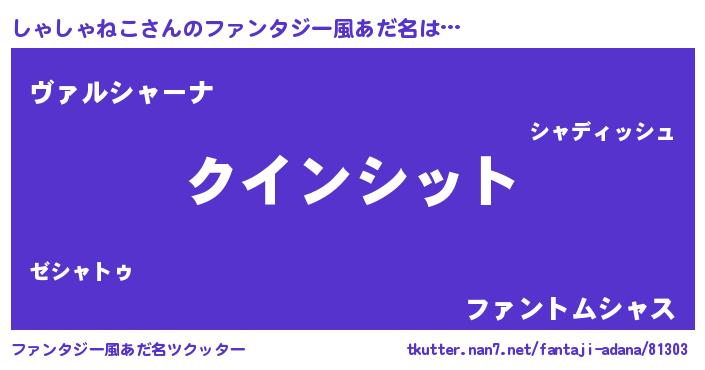 | 女子向けラノベタイトル風あだ名 | 『しゃしゃねこ夫妻のなれそめ』 |