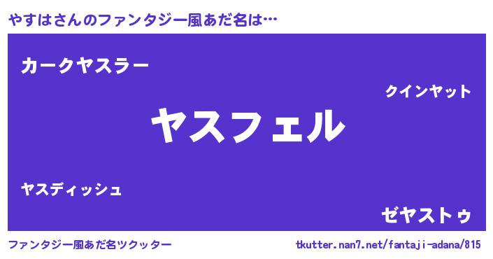 | 男性向けラノベタイトル風あだ名 | 『ヤスハアートオンライン』 |
