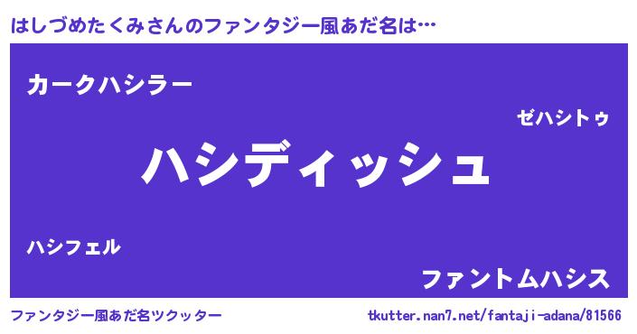 | ヒーロー風カッコイイあだ名 | 『ネオハシヅメタクミ』『黄金騎士ハシ』 |