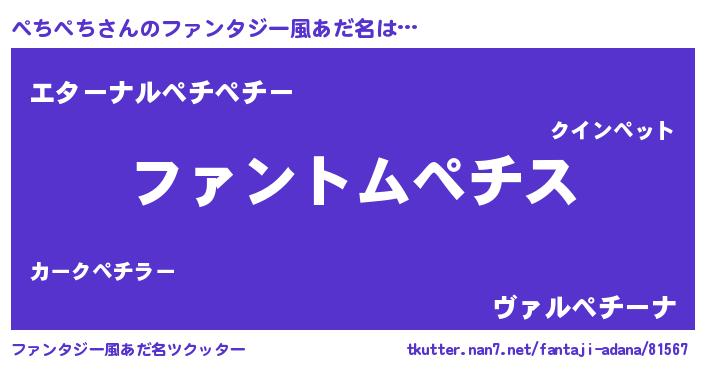 | 意味不明あだ名 | 『とにかく怪しいぺちぺち』 |