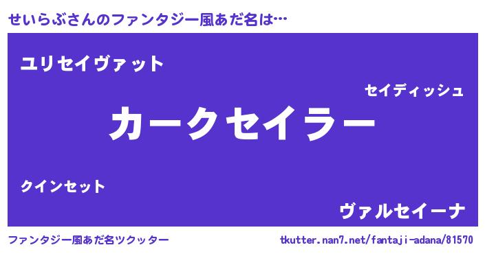 | 伝説のあだ名 | 『古より伝わる暗殺者せいらぶ』 |