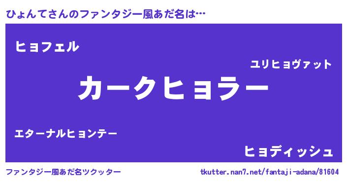 | 意味不明あだ名 | 『ペロリンひょんて』『永久保存ひょんて』 |