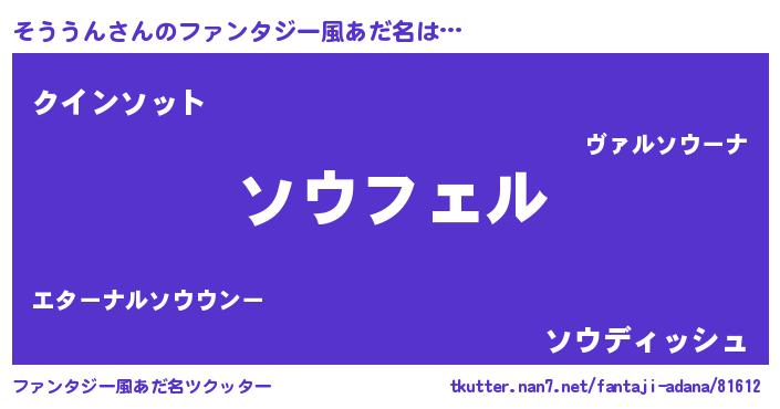 | 男性向けラノベタイトル風あだ名 | 『ソウウンアートオンライン』 |