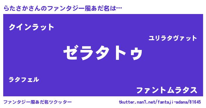 | 意味不明あだ名 | 『自称らたさか』『めかぶ科らたさか属』 |