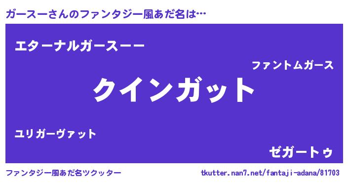 | ヒーロー風カッコイイあだ名 | 『慈愛の使者ガースー』『暗黒騎士ガー』 |