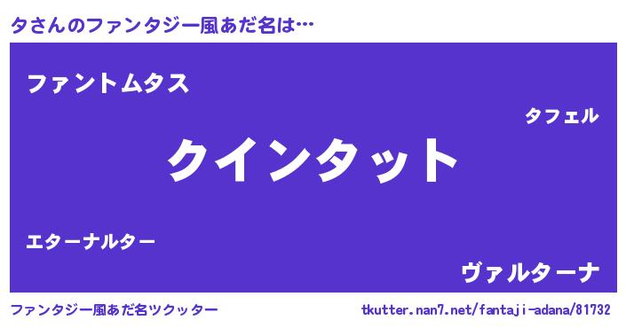 | 自動車の名前っぽいあだ名 | 『フィッタ』『タルトパン』『タクア』 |