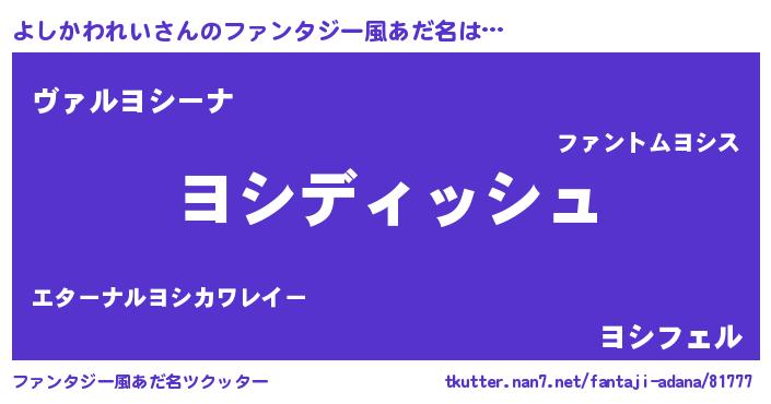 | ポケモン風あだ名 | 『ゼニヨシ』『ヨシゴンZ』『ヨーシイ』 |