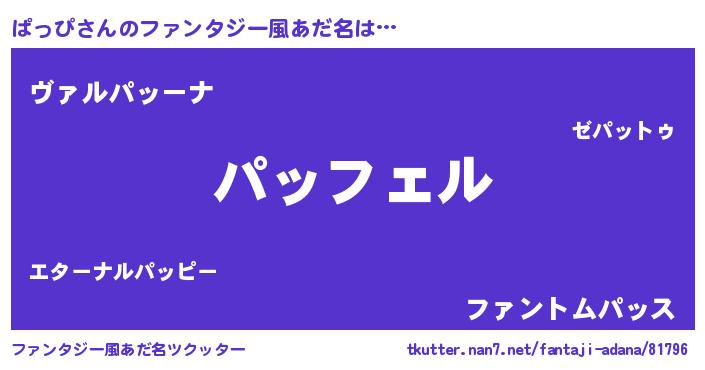 | 男性向けラノベタイトル風あだ名 | 『パッピアートオンライン』 |