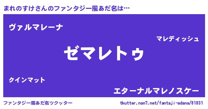 | 男性向けラノベタイトル風あだ名 | 『Re:まれのすけから始める異世界生活』 |