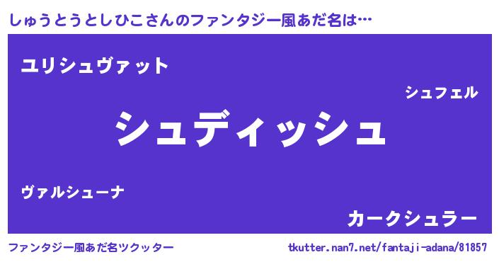 | ヘコむあだ名 | 『しゅうとうとしひこ(爆)』『しゅにー』 |