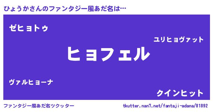 | 女子向けラノベタイトル風あだ名 | 『ひょうか姫と円卓の騎士』 |